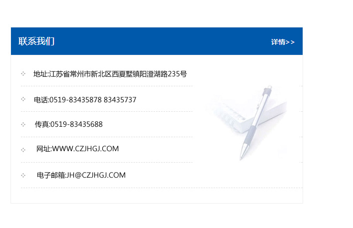地址:常州市新北區友邦商務大廈1幢16、17層  電話:0519-85101652  傳真:0519-85112595  郵編:213022  網址:www.cz-jiayue_cn.eveini.com  郵箱:xiajifengaa@163.com